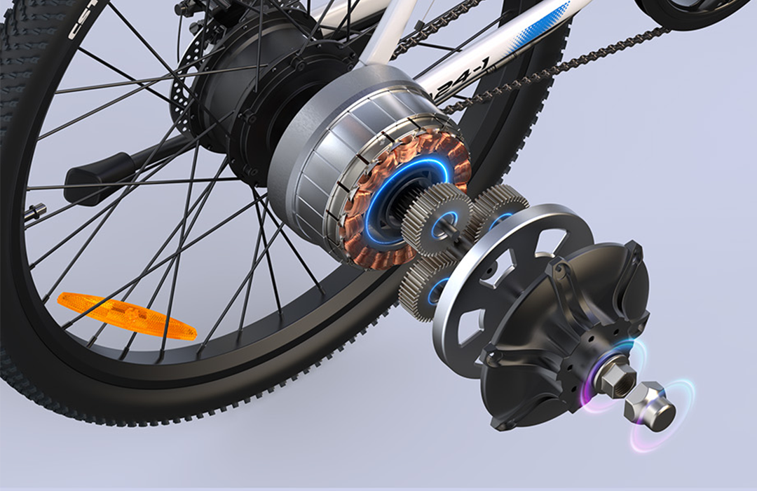 Powered by a 250W high-efficiency brushless motor, this 24" e-bike delivers exceptional 40N·m torque for effortless acceleration and confident hill climbing. The whisper-quiet motor achieves 95% energy conversion efficiency while offering three intuitive riding modes (Electric/Assist/Pedal).