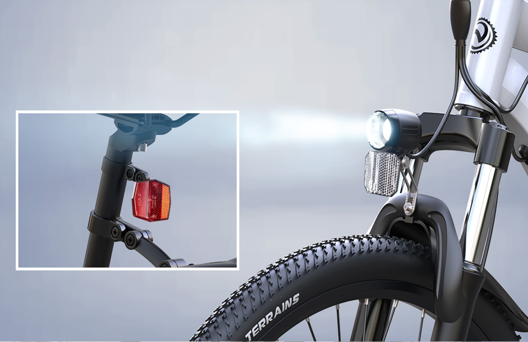 Our e-bike comes equipped with high-performance LED headlights and taillights to ensure safe nighttime riding. The ultra-bright front light provides exceptional visibility, while the integrated rear light keeps you clearly seen from behind.