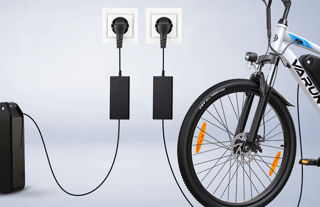 Varun e-bikes feature a removable battery that you can take out and charge at home, or you can charge it directly on the bike.