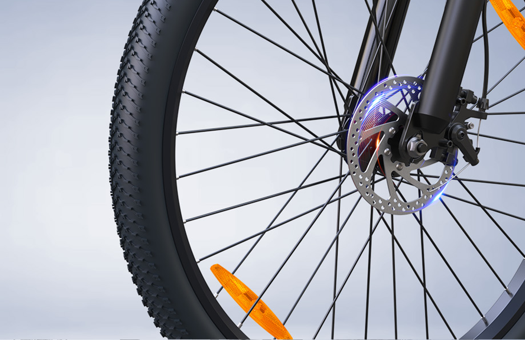 Our e-bike features front and rear disc brakes that deliver reliable, progressive stopping power in all riding conditions. The dual-disc design ensures consistent braking performance whether you're navigating wet city streets or steep downhill trails.